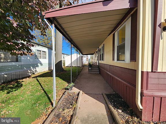Welcome to your new home in Hilltop Mobile Estates! This delightful mobile home offers a fantastic location, situated close to Route 422 for easy commuting and just a stone's throw away from the shopping haven of The Philadelphia Premium Outlets and the convenience of Costco. Situated on a generously sized corner lot, this property boasts a fenced-in yard, making it a perfect haven for outdoor enjoyment and privacy. A separate side entrance makes letting your furry friend out into the fenced in yard a breeze. You'll also find a spacious storage shed, providing ample space for all your storage needs, whether it's tools, gardening equipment, or seasonal items. Park right out front and enter under the covered patio. Also enjoy the space under cover for sipping your morning coffee or hosting gatherings. The perfect spot to enjoy the fresh air out of the elements. Inside, you'll be greeted by a bright and cheery interior. The well-designed layout includes a large bathroom with a washer and dryer conveniently located for added ease in your daily routine. Stay comfortable year-round with central air for cooling during hot summers and efficient propane heating to keep you warm during the colder months. The newer windows provide not only energy efficiency but also a fresh, modern look to the home. New hot water heater installed in 2022 and new bathroom vanity. Some of the standout features are the incredibly low taxes and the inclusion of water, sewer, and trash in the monthly dues, making it an affordable and stress-free living option. The newer carpet throughout the home adds a sense of coziness to the living spaces. Don't miss the opportunity to make this wonderful mobile home your own. It combines a prime location with outdoor space and ease of living.