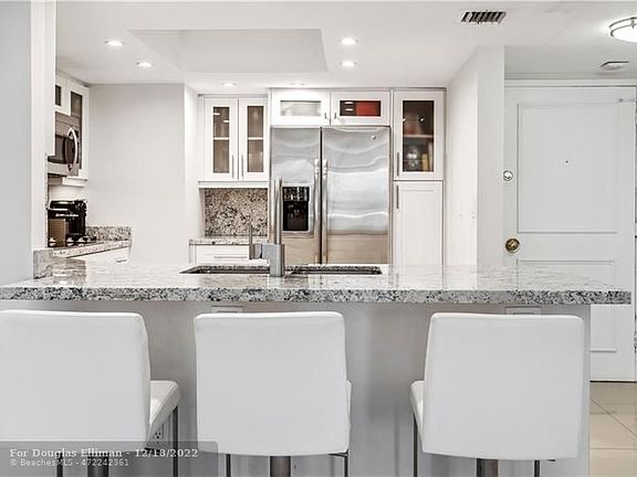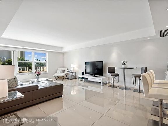 6 MONTH RENTAL. Location! Location! This renovated residence is located less than a 0.2 mile to the Central Beach and across the street from Hugh Taylor Birch State Park. This unit boasts modern design, open floor plan, high hat lighting, oversized tile flooring throughout along w/ a full baths outifitted with a walk in shower. There is one assigned parking space. This is a 24-hour doorman building. Amenities include heated swimming pool with a barbeque area, club room, exercise room and sauna. Located within close proximity to the Galleria Mall, Water Taxi, The Parrot, Primante Bros, Publix and Starbucks and bus stop across the street. NOTE: This is a 2BR/2BA condo being rented as a 1BR/1BA Condo for 6 month lease term. Tenant will not have access to the primary bedroom/bathroom