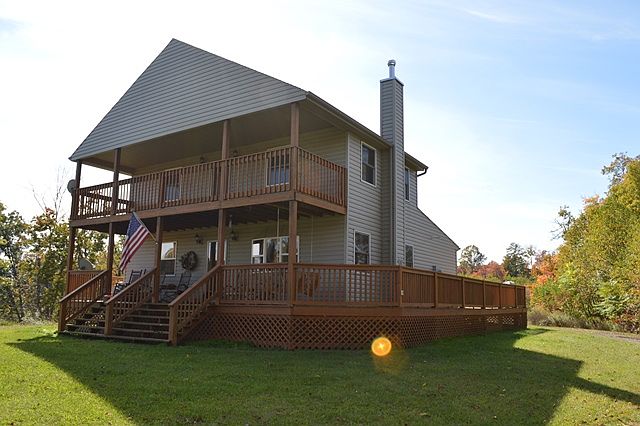 The creatures of the forest and your family will feel free and secure in this serene 15 acre private world that’s just 25 minutes from the city while sitting on your wrap around deck or porch. You will fall in love with this 2 bedroom, 2 bath, home that features a cathedral ceiling in the sun-drenched country, eat-in kitchen with custom cabinets, glass fronts, bar and desk area. Family room offers a gas fireplace, beautiful wood cherry floors throughout downstairs and staircase. Master suite offers a claw foot soaking tub, oak floors and private door to upper balcony with woodland views. We have a guest house on the property on the 2nd floor of the 6 car garage. Guest house offers 2 bedrooms, full bath, rec room area and kitchenette with custom wood bars and wood floors. Lower level is concreted, insulated, heated, ½ bath and work shop area. Property offers free gas, mineral rights, private gated lane, surrounded by Wayne National Forest with access to bike trails, and 2 septic systems. More than a new home for you, this is a whole new outlook on life.