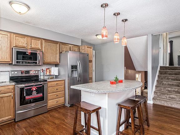 Tired of the same old floor plans? This home is slightly different with it's front to back 3 level split. Fresh remodeled kitchen with hardwood flooring, stainless appliances, center island adjoins the great room your family will love and large enough for any occasion! 2nd level has 3 bedrooms and 1 full bath. Down one level has a spacious family room designed for informal gatherings, half bath and laundry. Roof and windows replaced in 2010; Garage Door 2011; Hot water heater 2013; Furnace/Heat Pump 2016; LeafGuard on gutters 2016. Brand new 200 amp electric service. Shed is 10 x 16. Fabulous fenced backyard on large lot just minutes to I-270 and I-71. Great starter home! EZ2S