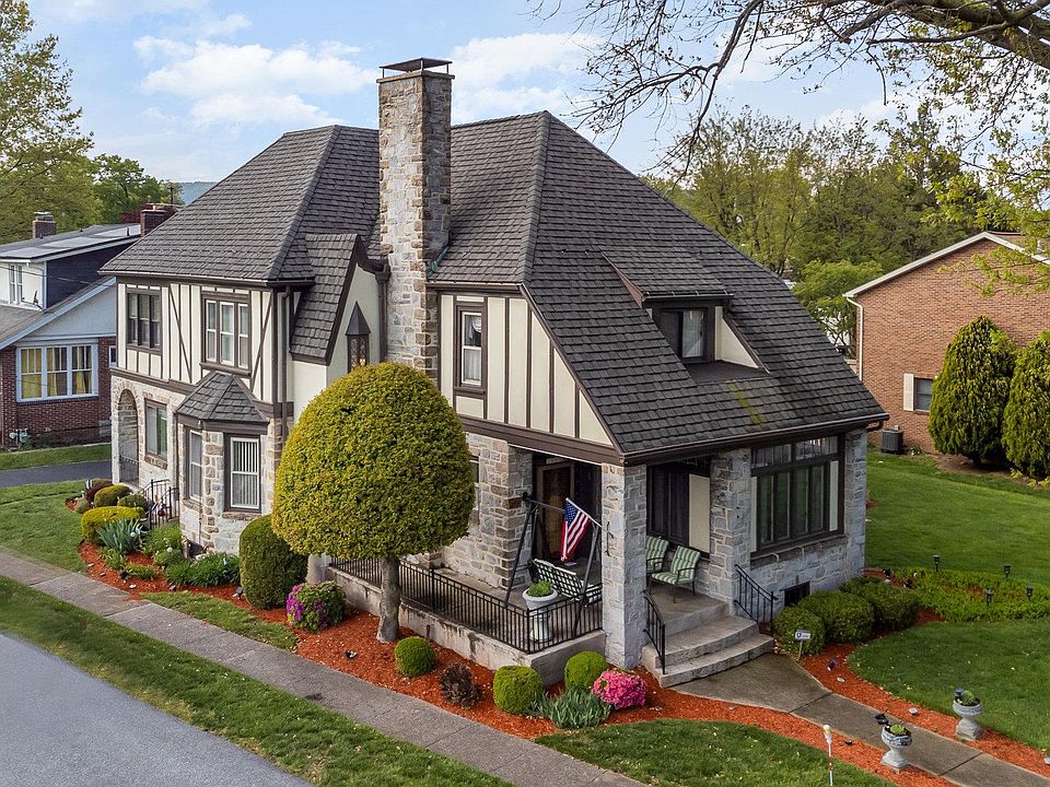 This exceptional home in uptown Harrisburg offers a world of possibility, with so much flexibility. Traditional Tudor design, with multiple bedrooms with ensuite bathrooms and a unique layout, this is an opportunity for a single family house or to be joined by in laws or others in attached yet private spaces. You will love the original woodwork, and elegance of this Tudor home with its traditional layout and privacy for all in their own spaces. Morning coffee at the kitchen peninsula and space for informal entertaining while formal dining room will allow all your guests to sit down and enjoy a meal together. The Living room with wood burning fireplace and the adjacent den/office can be filled with quiet evenings at home or joyful space filled with family and friends. The den/office or exercise room) can assist in remote work and a secondary work station off the kitchen could serve another family members needs. Also on main floor is another room with an ensuite bathroom that could be reserved for guests or anyone who needs first floor accessibility. Bonus of having two laundry rooms- on the first and second floor. The first floor addition accessed off the kitchen or from the exterior with its own private entrance, could be an in law suite, family room or first floor primary bedroom. This room is also accessible via a ramp from the driveway and has direct access to an oversized deck which faces the lawn. The second level, with another primary bedroom with ensuite bath also has 3 additional bedrooms plus a laundry room, playroom/sunroom and additional bathroom. If you are looking for more, the attic with its high pitched ceiling allowing for headroom , could be easily renovated to accommodate even more space- an office, bedroom or general living area. Off street parking is also available with the detached garage and driveway. Beautiful well kept landscaping adds to the beauty and elegance of this home. The side yard with its full grassy area provides plenty of opportunity for outside recreation. The uptown neighborhood with easy access to Italian Lake and the Riverfront provides multiple access points to recreation. The nearby JCC with membership open to all has a full fitness center , gym, weight room and many programs and activities for fitness and health. Easy access to midtown and downtown and plenty of street parking make this neighborhood an ideal location. Additionally, 5 minutes away from 81 to get you to the West Shore and Hershey. A few minutes drive takes you to shopping on Linglestown Road. Don’t miss the opportunity to own and live in this treasure in uptown Harrisburg,. Note: House can be sold with any furniture in place