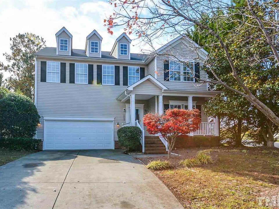 Built in 2001, this Wake Forest two-story corner home offers a kitchen island, an office, hardwood flooring, and a two-car garage. Upgraded features include fresh interior paint throughout. A community pool is part of the HOA.