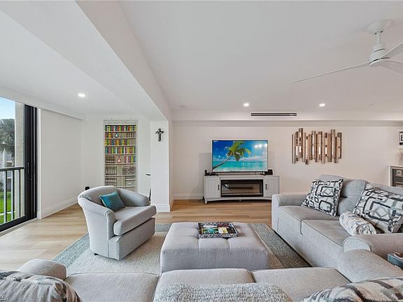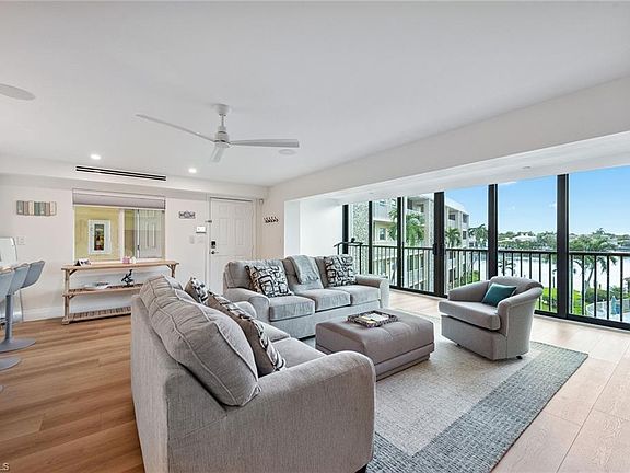 This updated third-floor, three-bedroom home offers stunning views of Moorings Bay. Conveniently located across from beach access, you can spend your days basking in the sunshine and end the day watching the colorful sunset. This newly remodeled unit features luxury vinyl plank flooring throughout, a smart home control panel, in-unit laundry, a west-facing open-air private balcony off the primary bedroom with Gulf views, and much more. Enjoy this bay-front residence featuring a wall of impact glass sliders designed to maximize the view. The kitchen is equipped with Lincoln quartz countertops and backsplash, a large island with bar seating that is perfect for entertaining guests, Bosch appliances and a wet bar complete with a wine cooler. Harbour Cove residents enjoy a peaceful bay-front pool, grills, and on-site boat slips that can be leased through the association. Owners can lease their units three times a year with a 60-day minimum. Located on Gulf Shore Boulevard, just north of Harbour Drive, it's a quick bike ride to the private Moorings Beach Park or the renowned shopping and dining at Venetian Village.