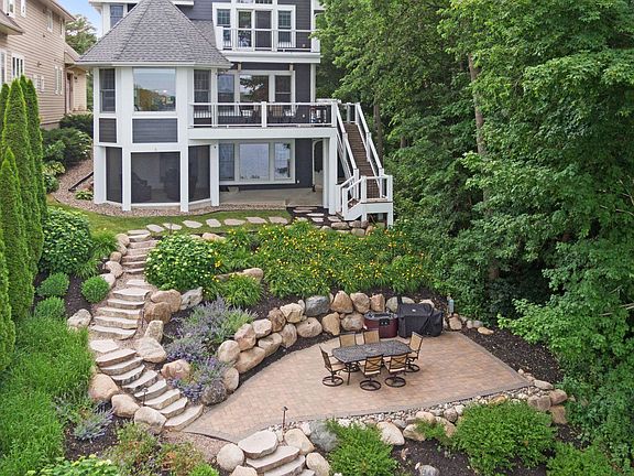 This home is available immediately-you can be lakeside enjoying last days of summer! Beautiful views of Cooks Bay & fresh interior finishes set the nautical tone for the home-carefully curated furnishings & accessories create a turn-key opportunity for the next owner. The kitchen island is a great place to share in meal preparation with plenty of seating at the formal and informal dining areas. Enjoy a book and bird-eye views of Cooks Bay from the cozy 4-season porch. The vaulted, primary bedroom has spectacular lake views from a private deck. A large, ensuite bedroom has been outfitted as an upper-level family room but could be tailored for multiple uses. Experience convenient off-lake entertaining in the rec room: bar, fire-side seating, pool and ping pong! A screened porch is a perfect spot for the cigar aficionados. The tiered yard offers venues for s'mores around the fire-pit, a grassy landing for spike ball, bag toss or a game of catch. Don't miss this opportunity!