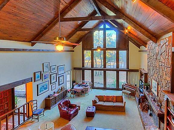 This is your DREAM HOME! Enjoy the incredible 5 ACRES in the heart of Edmond close to I-35 and shopping but tucked away on a wooded and private property. Great Room with 2 story windows and floor to ceiling stone fireplace, wood ceilings and beams. 3 Beds, 3 Full Baths. MIL Floor Plan with formal dining and bonus room. Kitchen boasts 2 huge pantries, island, built in desk and more. Freezer room in laundry. Property even features an approx. 1,200 SF 2 bedroom, full kitchen, bath and living room with wood burning fireplace apartment over the 1,000 SF shop. Also included is an additional shop, covered parking for 12 including 2 additional covered parking structures for your boat and RV storage! This home is for you. Multi Level Deck with screened in porch. What an incredible find! This won't last long; call today to schedule your private showing.