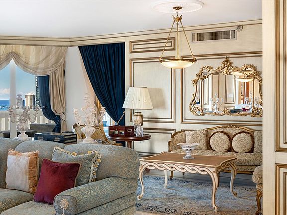 Experience elevated living in this fully furnished 5-bed, 6.5-bath sky residence on the 29th floor of the prestigious Williams Island. Unit 2902 boasts breathtaking panoramic views of the Intracoastal Waterway, Atlantic Ocean, and city skyline from floor-to-ceiling windows and a spacious private balcony perfect for enjoying sunrise coffee or sunset cocktails. This impeccably maintained home is offered fully furnished with elegant, classic décor, and custom upholstered seating. Ready for move-in. The open-concept layout is light-filled and expansive, generous closet space. Located in the 3000 Building, resort-style amenities such fitness center, valet, concierge, pool, tennis courts, and access to the Williams Island Club, which features a 27,000 sq ft spa, marina, fine dining, and more.