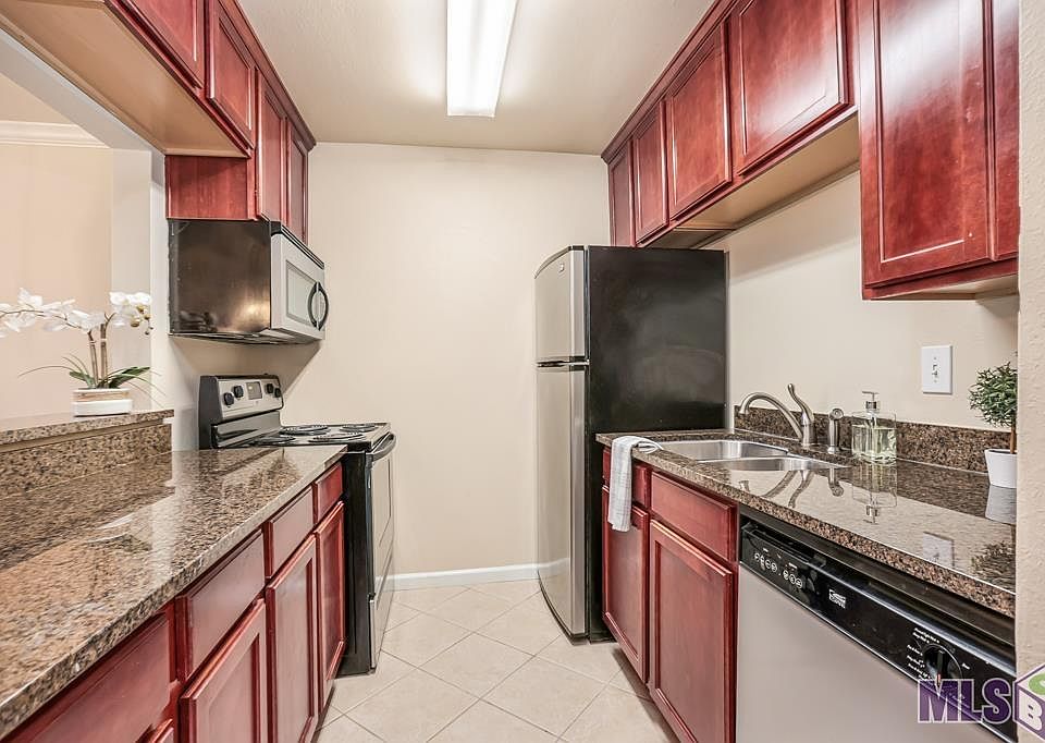 Well maintained condo in a gated community within walking distance of LSU! This condo is a single story unit on the first floor! The family who currently owns this unit used it for all of their children + used it personally to go to LSU games. They are sad to see it go, but they hope the next owner will get as much use out of it as they did! This condo features new "wood look" vinyl flooring, brand new carpet and an open floor plan. The living room is open to the dining area. The kitchen has granite countertops, stainless steel appliances (that will remain!) and a bar window overlooking the living space that accommodates barstools. There is also an in-unit stackable washer/dryer that will also remain. One reserved spot for condo unit, with another on a first come first serve basis. AC units have been recently cleaned, regularly maintained, and one was replaced just last year! HOA fees cover pool usage, common area maintenance, and water/sewer.