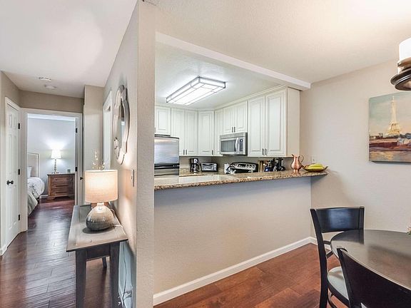 Nestled in the beautiful, park-like setting of the Lakeview Terrace, this ground-level, 1 bdrm, 1 bath condo is a great place to call home & has an open-concept floor plan with engineered hardwood flooring throughout. The kitchen--granite countertops, stainless steel appliances and an elevated breakfast bar. A quaint fireplace in the living room & Indoor laundry area off the bathroom. A private patio and a newer furnace & air conditioner. Lakeview Terrace provides an inviting environment with mature trees, walking paths, ponds, and a community pool. Located near Almaden Lake Park with bocce courts, playgrounds and the Los Alamitos Creek trail. Located close to Oakridge Mall, Whole Foods, Trader Joe's & Costco. With easy access to HWY 85 and 87, --providing an easy and convenient commute to work or other destinations. Overall, this beautiful condo in the Lakeview Terrace community offers a great living experience for the new homeowner! HOA pays for water and garbage.