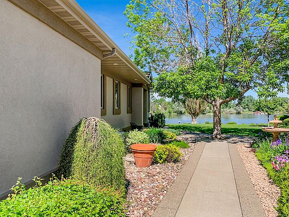 PEACEFUL & PRIVATE high-end townhome in a gated community with Missouri River frontage. This home features tasteful finishes, open floor plan, white kitchen with stainless appliances, granite counters, tile backsplash and breakfast bar opening up into the dining area and living room that has a tile-surround gas fireplace with built-in shelving, surround sound, glass door to the patio, yard and river. Master suite includes walk-in closet, private patio, beautiful master bath with a granite double sink vanity and tile walk-in shower. There is an additional bedroom and full bath plus a large office/den space with glass French doors. Attached heated and finished two car garage with built-in speakers and plenty of storage. Enjoy common area with chipping area, fire pit & park-like landscaping.