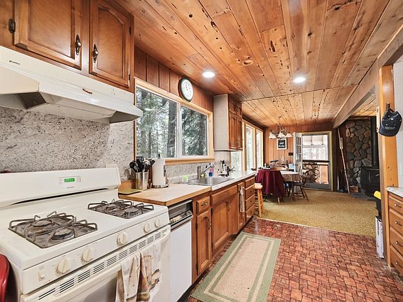 Lake front property! Situated on over 6 acres in front of the Little Grass valley Lake, this cute 3 bedroom 2 bathroom is the perfect place to call home. Step inside and immediately notice its cabin-like feel, wood paneled walls, ample amount of windows highlighting the beautiful views and a spacious living room with a wood stove for those chilly nights. The kitchen is perfect for the everyday chef offering loads of counterspace, wood cabinetry, dishwasher and gas range that will make cooking a breeze. All 3 bedrooms give you plenty of space to stretch your legs and 2 bathrooms to utilize for your morning routine. Other amenities include indoor laundry room, a great back deck where you can breathe in the fresh air and soak in all the wonderful scenery and a detached storage shed. With having over 6 acres all to yourself and lake frontage, this is the perfect place to getaway!