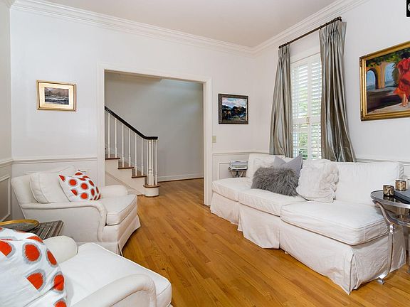 - Living Room: Floors-Hardwood, Molding, Ceilings-High (over 9 Ft)
