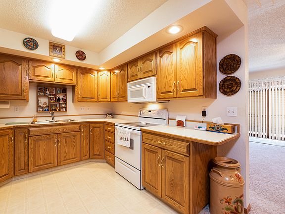 MAIN FLOOR CONDO! Immaculate condition, secure building with 2-CAR ATTACHED GARAGE, 2 bedrooms & 2 bathrooms including the private master suite, plus an extra room perfect for den/office or storage. Spacious living room with cozy GAS FIREPLACE and patio door with direct access to the parking lot (perfect when family or friends visit or pick you up)! Neutral colors, kitchen with oak cabinets & tall pantry, adjoining dining area, laundry room with washer & dryer included. Along with the 2-car garage there is a designated parking space included. $160/month condo fee includes snow removal, lawn care, heat, water, sewer, garbage, exterior building insurance & maintenance.