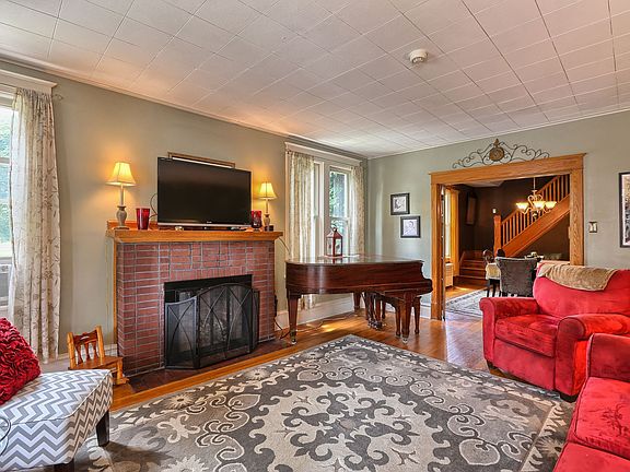 Delightful home in popular, conveniently located Riverside, just 3 blocks to Italian Lake and high above the flood plain! Spacious, bright rooms throughout with newly finished wood floors. Handsome oak trim in living room with gas fireplace and in dining room with sunny Southern exposure. Remodeled eat-in kitchen with newer gas range. Half bath on first floor too! Nicely updated period bath and 3 bedrooms on 2nd floor PLUS a fantastic 3rd floor, perfect for guest, office or quiet getaway also offers lots of storage space. All this plus a wonderful finished lower level family room with built-ins. Efficient gas heat, replacement windows. Fenced yard and detached garage with alley access. They just don't get much better than this! Move right in.
