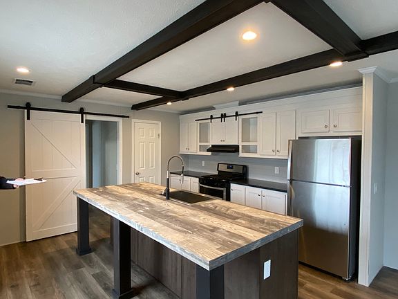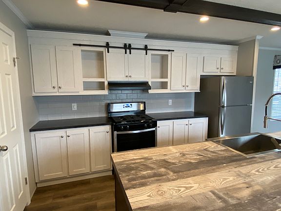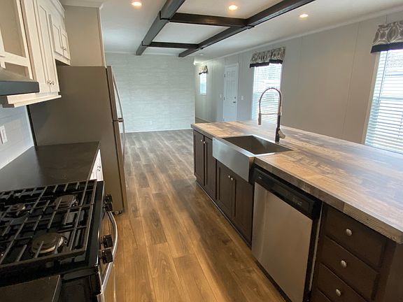 HOME FEATURES? 3/2? Large Front Deck? A/C & Shed? Stainless Steel Appliances with Farmhouse Sink? Open Concept Living Room/Dining Room ? Kitchen Island with upgraded cabinets? Under/Upper Kitchen Cabinet Lighting? Pantry? Rustic Package
