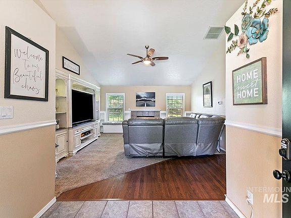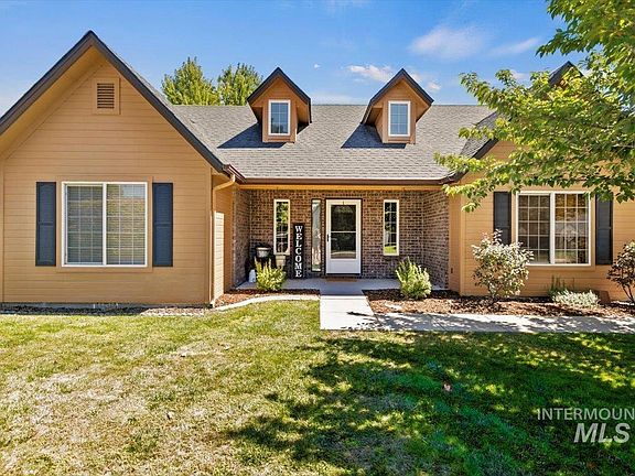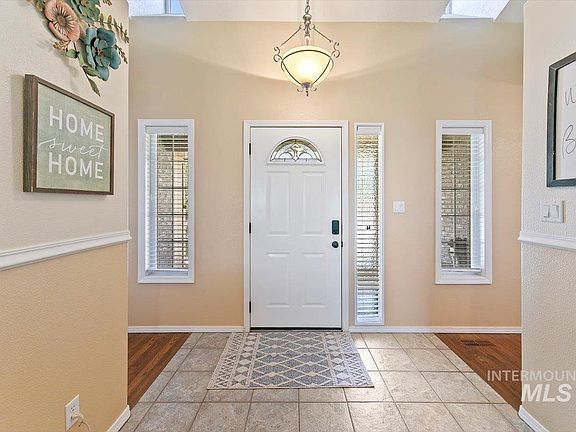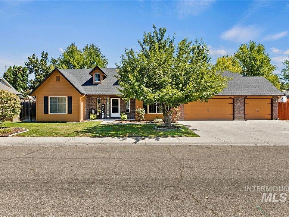 Room for everything here! RV/trailer parking behind the gate, a large 3-car garage, AND a spacious backyard shed provide all the storage you need for vehicles, gear, and toys—an exceptional find in a great Meridian neighborhood! Located on a quiet street near Ustick/Ten Mile with convenient Ten Mile interchange access, this location makes commuting easy, offers many nearby options for shopping, and convenience to schools. Great layout of space inside this well-maintained single level, split-bedroom floor plan which includes a flex space off the kitchen, perfect for an office or hobby area. Primary bedroom with sliding door to backyard, walk in closet, soaker tub, separate shower. The cozy living room features lots of natural light and a gas fireplace. The large east-facing backyard is a private retreat with afternoon summer shade, a spacious patio, hot tub wiring, grassy play area, mature landscaping, full fencing and established strawberry, grape, and blackberry vines.