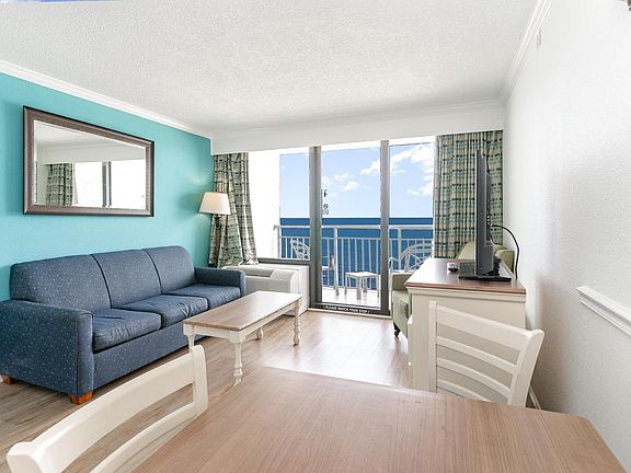 Welcome to your updated oceanfront escape at The Caribbean Resort! This beautifully refreshed condo features new wall AC unit, laminate flooring, tile in the kitchen and bathroom, and granite countertops in the efficient galley kitchen, complemented by sleek black appliances. Whether you're looking for the perfect second home or a prime short-term rental investment, this unit checks all the boxes. With multiple sleeping options, including a convenient Murphy bed in the living area, it comfortably accommodates extra guests—ideal for maximizing rental potential. The Caribbean Resort is known for its top-tier amenities, including a lazy river, indoor and outdoor pools, hot tubs, fitness center, game room, gift shop, valet parking, and even an on-site spa. You and your guests will love the convenience of a Starbucks on property, as well as the oceanfront tiki bar, Ben & Jerry’s, and the iconic Sea Captain’s House restaurant just steps away. Perfectly located in the heart of the Grand Strand, you’re just minutes from world-class shopping, dining, entertainment, golf, and so much more. Don’t miss your chance to own a piece of paradise!