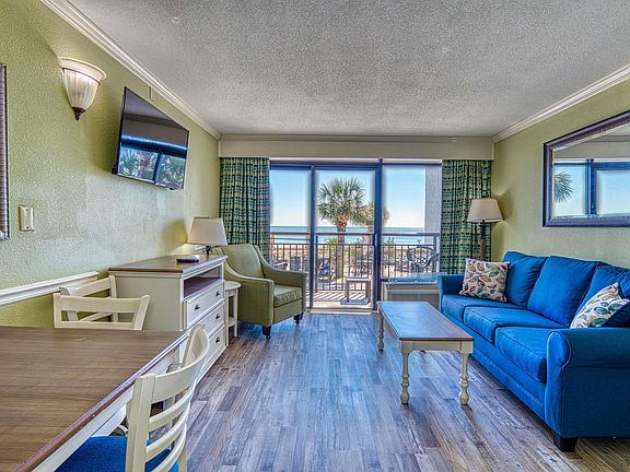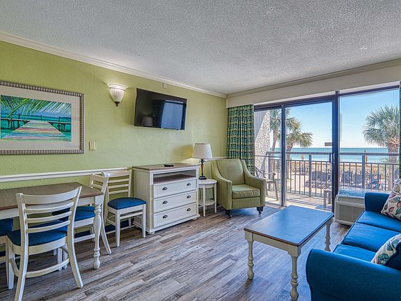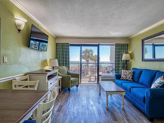 Check out this stunning 1BR direct oceanfront condo located in Caribbean Resort! With breathtaking views of the ocean and pristine sandy beaches, this condo offers an unparalleled vacation experience. The condo is nicely appointed and can accommodate up to 8 guests with the added convenience of a Murphy bed and sleeper sofa. The galley kitchen is equipped with granite countertops, perfect for preparing meals for your group. The true highlight of this condo is the private balcony, located right next to the resort's lazy river, where you can bask in the refreshing sea breeze and enjoy the awe-inspiring sunrises and sunsets. The Caribbean Resort offers extensive oceanfront indoor and outdoor amenities, including pools, hot tubs, lazy rivers, and kiddie pools, as well as a sun deck for soaking up the sun. You'll also find a Starbucks and a yogurt shop conveniently located across the street on the first level of the parking deck. Located on the northern end of downtown Myrtle Beach, you'll be close to popular attractions such as Broadway at the Beach, the Myrtle Beach Convention Center, the Myrtle Beach Boardwalk, and The Skywheel. The award-winning Sea Captain’s restaurant is right next door, providing a convenient and delicious dining option. Don't miss this opportunity to own your slice of paradise. Whether you're seeking a personal retreat or a lucrative investment, this 1st floor oceanfront condo at Caribbean Resort is sure to exceed all expectations. Act fast and make your dreams a reality!