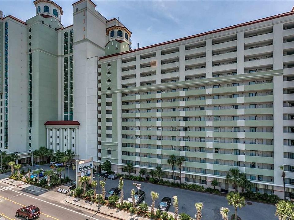 Direct oceanfront 3BR corner condo in the oceanfront Caribbean Resort. This is the "deluxe" floor plan - the biggest oceanfront 3BR condo in the building. The wrap-around balcony, in combination with the high elevation, offers gorgeous views of the ocean to the east and the coastline to the north and south. A second balcony off a guest bedroom provides spectacular views as well. Luxurious condo features include granite counter tops, stainless steel appliances, tile floors in foyer, baths and kitchen, and designer furnishings. Interior photos are of a similar unit (same floor plans and furnishings) but balcony photos are from this condo. We will substitute actual interior photos as soon as we can gain access between rental guests. Outstanding year-round rental income too! This oceanfront building is one of the newest oceanfront developments in Myrtle Beach - completed in 2007. Caribbean Resort features include air conditioned interior corridors, a game room, a fitness room, an onsite convenience store and a beautiful check-in lobby. Extensive oceanfront indoor and outdoor amenities pools, hot tubs, lazy rivers, kiddie pools, a sun deck, shuffle board, a water slide, and a seasonal bar and grill. A Starbucks and a yogurt shop are located across the street on the first level of the parking deck. The Caribbean Resort is located on the northern end of the downtown Myrtle Beach area - close to Broadway at the Beach, The Myrtle Beach Convention Center, the Myrtle Beach Boardwalk, The Skywheel, and next door to the award -winning Sea Captains restaurant. The HOA fee includes water/sewer, unit electric, cable and internet, as well as building insurance and HO6 contents insurance. Measurements are approximate and not guaranteed. All information is deemed correct, but it is the responsibility of the buyers and their agent to verify all information.