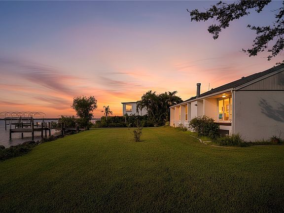 This waterfront home places the PEACE RIVER RIGHT IN YOUR BACK YARD, where you can enjoy breathtaking sunrises each morning. Featuring 3 bedrooms, 2 baths, nearly HALF AN ACRE of land, and comes PARTIALLY FURNISHED. The property has been lovingly maintained with a NEW A/C (2024) NEWER ROOF (Dec. 2020) and a NEWER DOCK (2020). The spacious lot also provides room to add another garage or create dedicated parking for your RV or boat on the north side of the home. Inside, the foyer opens to the formal living and dining rooms. The family room, complete with a wood-burning fireplace, flows through triple sliding doors to the lanai and connects seamlessly to the kitchen with custom cabinetry and a breakfast bar. The primary suite offers peaceful river views, private deck access, and an ensuite bath. A split floor plan ensures privacy for the two guest bedrooms, one with direct lanai access. Outdoor living shines with a large, screened lanai, and a private dock with water and electric, perfect for relaxing or launching your next boating adventure. Located in Harbour Heights, a non-deed restricted waterfront community with NO HOA, you’ll also benefit from a recently upgraded water distribution system. Just around the corner, Harbour Heights Park offers boat ramps, fishing docks, pickleball and tennis courts, shuffleboard courts, basketball court, playgrounds, picnic areas, and more. From your dock or the park, you can easily reach the Peace River, Charlotte Harbor, and the Gulf of America. With I-75, Punta Gorda Airport, downtown Punta Gorda, shopping, dining, and golf all nearby, this home delivers the perfect balance of waterfront serenity and everyday convenience.
