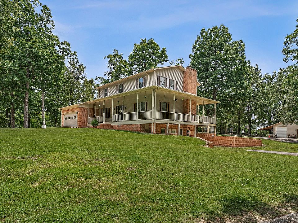 Set on 3 serene acres with mature trees, this spacious three-level home offers room to spread out and features a 24x24 shop sheds on both sides, wraparound deck, and walk-out basement. Inside, the main level boasts an updated kitchen with gas range, microdrawer, serving-height bar, and a built-in wet bar in the dining area. A cozy gas-log fireplace warms the living room with additional sitting area. The oversized laundry room includes a full bath for added convenience. Upstairs you’ll find three bedrooms and two baths, including a generous primary suite with double vanities and a tiled walk-in shower with seat. The basement offers incredible flexibility with a full second kitchen, game room, 4th bedroom, hobby room, and a full bath—perfect for guests or multi-generational living. Double garage, privacy, and functionality all in one, come see the updates!