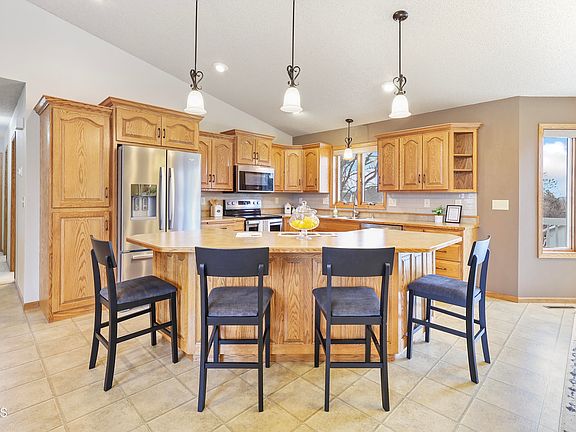Just in time for the holidays! This ranch-style home is located in the sought after Country West Development, NW Bismarck, offering a spacious layout, which was built and designed by Joe Vetter Construction, including 4 bedrooms and 3 bathrooms. The open floor plan unites the living room, dining area, and kitchen, creating a welcoming main level. The master bedroom features a private bath and walk-in closet, with a second bedroom, bathroom, and laundry room on the same floor. Downstairs, the walk-out lower level includes a cozy family room with a gas fireplace, a game/rec area, two more bedrooms, a bathroom, and additional storage. The 3-stall attached garage is well-equipped with water hook-ups, a floor drain, and plumbing for a gas heater. Outside, the fully fenced backyard and underground sprinkler system enhances convenience. Located near local schools, shopping, and dining. Don't miss this opportunity to live in NW Bismarck!
