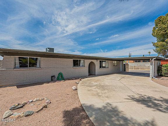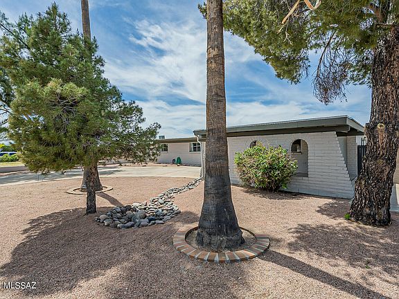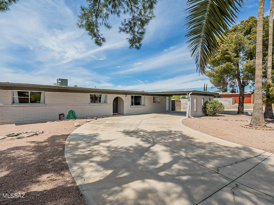 Classic ranch style home with room for the whole family! Living room, Family room, Formal dining, Screened in back patio, Built in BBQ, Beautiful mature trees, Lots of natural light with a wall of windows in the living room & Corner lot make this home with circle drive very desirable! No carpet, & lovely tile floors throughout. New tile tub surrounds in both bathrooms. Upgraded 200 amp panel. Lots to love here! Located on Tucson's East side & conveniently located near schools, shopping, public transportation & medical offices. Come check it out!