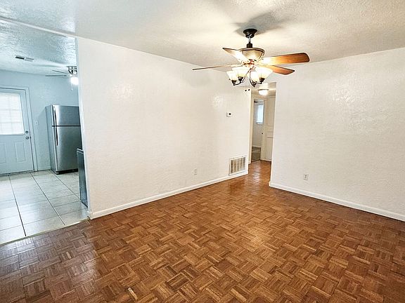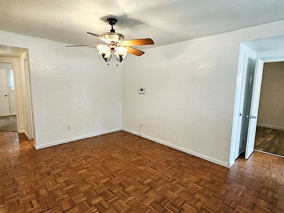 Welcome to your new rental home. This property features three bedrooms plus an extra room that can serve as an office, playroom, or guest space. Inside, you'll find updated flooring, fresh paint throughout, and a comfortable layout that suits a variety of needs. The living room is finished with wood flooring, while the bedrooms provide ample space with low-maintenance surfaces. The kitchen includes white subway tile, stainless steel appliances (refrigerator and gas range included), and plenty of cabinet storage. Each bedroom is generously sized, giving flexibility for furniture and personal style. Outside, most of the backyard is enclosed with a chain-link fence, and a side patio off the kitchen door is secured behind a wooden fence for added privacy. A large storage shed is also included for tools or outdoor gear. The exterior presents nicely, giving the home a welcoming feel. Schedule your showing today!