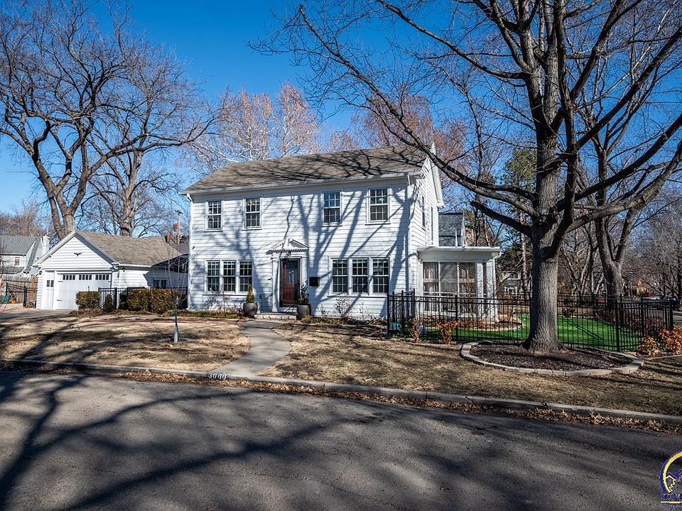 Welcome home to this stately two story Colonial in Topeka's historic Collins Park neighborhood. Nestled on a corner lot, this home lends itself for daily life and comfortable entertaining. Meticulous and thoughtful owners have breathed new life into this beauty throughout their ownership, balancing modern convenience while maintaining the charm that a home of this era will radiate. From the ability to watch the world pass by in the cozy covered porch (heated/cooled), to preparing bountiful feasts in the spacious, open custom kitchen. The kitchen cabinets have convenient upgrades, allowing for the utmost organization. The designer appliances are in place, right where they belong. One of the many pleasant surprises is the adorable coffee bar area, awaiting one's newest creation. Enjoy casual chats around the kitchen island, leisurely talks in the dining room, and watch the big game in the living room while enjoying the warmth from the fireplace insert. The primary bedroom is impressively sized. Natural light is abundant throughout the home, adding to the beauty, both indoors and out. The elegant fixtures and lighting were chosen with perfection in mind. The bathroom upgrades are impressive. The wood floors are gleaming. This home is prepped, spiffed, and ready for a discerning buyer to make it their home.