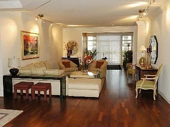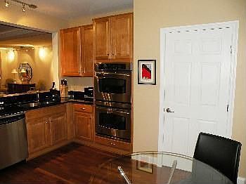 You'll think it's the model! Fabulous Brazilian cherry flrs in main living rms & LOADED w upgrades incldg: carpet, cabinetry, granite, lighting, ceramic tile & MBath. Tray ceilings in DR & MBR. Gourmet Kit w ss applcs, Black Galaxy granite & upgrded cabinets. MBath feats true marble vanities. Stunning view of lake. Includes 1 deeded garage parking spc. Absolute perfection.