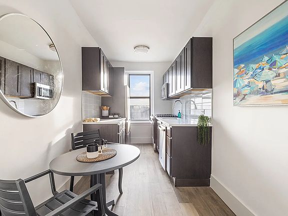 RENT TO OWN OPTION AVAILABLE! SPONSOR SALE WITH NO BOARD APPROVAL, AND FLEXIBLE FINANCING AVAILABLE! 3000 Valentine #2B is a spaciously laid out corner two bedroom, one bathroom 1,050 square foot home featuring the highest upgrades in all aspects. From the moment you enter, you will be greeted by graceful arches and pre-war details that set the stage in this turn key home. The residence premium upgrades include Terra Legno Cannon gray engineered wood flooring, flush mount Maxim Linear LED overhead lighting fixtures, interior two panel doors by Jeld-Wen with hardware by Yale and 8" base moldings. An inviting entry foyer leads you to a brand new eat-in kitchen with custom stained wood cabinetry in smoke finish, Calacatta Valentin Quartz countertops in warm white plus undermount sink by Elkay and glazed ceramic backsplash in bright white tile. In addition, the appliance package is designed by Haier and GE and includes a dishwasher and microwave. The bathroom is beautifully equipped with Toto Entrada toilet, cast iron 60" bathtub, two separate vanities, Huntington Brass fixtures and Michelangelo Calacatta Porcelain wall and floor tile. The king and queen-sized bedrooms are nicely removed from the entertaining area and each bedroom offers great closets. Rounding out the picture are north and west exposures, skim-coated walls, updated electric and restored original Deco details. Fall in Love with Timeless Details Reinvented. Welcome to Origin Valentine, a timeless gem nestled in the heart of Bedford Park. Originally built in the 1930's, Valentine stands as a testament to classic Art Deco architecture, now embracing a grand new era of sophistication. The rejuvenated entry sequence, complete with a stately canopy sets the tone for what lies within. The restored lobby showcases its original gem-toned terrazzo floors, a nod to the building's rich history. Origin Valentine is set on a leafy residential street, but nearby subways reach 42nd Street in under 40 minutes, with supermarkets and shopping within blocks. And living at Valentine means access to the great greenspaces of the Bronx: Jerome Park Reservoir and iconic Williamsbridge Oval are area favorites, and the New York Botanical Garden is just down the street. Just blocks to the B/D/4 train, the Mosholu Parkway, and the Metro North Harlem Line, Origin Valentine ensures that travel and commuting are effortlessly convenient, including easy access to Bronx Science, Fordham University, and Montefiore Medical Center. Come see why there's love in the air at Valentine. Learn about the entire collection by searching Origin North. Photography is of the model residence. Note: There is an assessment in the amount of $241.62. This is not an offering. The complete offering terms are in an offering plan available from new sponsors. File No. C-860376. New Sponsor: BRX Valentine Apartments, 152 West 57th Street, 12th Floor, New York, NY 10022. Equal Housing Opportunity.