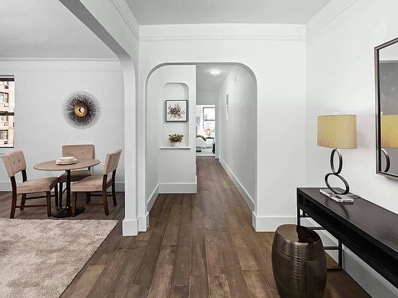 SPONSOR SALE WITH NO BOARD APPROVAL, AND FLEXIBLE FINANCING AVAILABLE! Origin Valentine #4J is a spaciously laid out 1 bedroom, 1 bath 990 square foot home featuring the highest upgrades in all aspects. From the moment you enter, you will be greeted by graceful arches and pre-war details that set the stage in this turn key home. The residence premium upgrades include Terra Legno Cannon gray engineered wood flooring, flush mount Maxim Linear LED overhead lighting fixtures, interior two panel doors by Jeld-Wen with hardware by Yale and 8" base moldings. An inviting dining foyer leads you to a brand new kitchen with breakfast bar, custom stained wood cabinetry in smoke finish, Calacatta Valentin Quartz countertops in warm white plus undermount sink by Elkay and glazed ceramic backsplash in bright white tile. In addition, the stainless steel appliance package is designed by Haier and GE and includes a dishwasher and microwave. The bathroom is beautifully equipped with Toto Entrada toilet, custom glass shower screen, Huntington Brass fixtures and Michelangelo Calacatta Porcelain wall and floor tile. Rounding out the picture is your king size bedroom with great closets, skim-coated walls, updated electric and restored original Deco details. Located in the Bedford Park neighborhood, 3000 Valentine Avenue is a classic Art Deco apartment building originally built in 1937 that is now entering a grand new era. As one of nine properties in the new Origin North collection, the building and its spacious apartments blend historic details with a top-of-the line developer restoration. Located moments away from the B/D/4 train, the Mosholu Parkway and the Metro North Harlem Line, the property is ideally located for travel and commuting. The building is just minutes from The New York Botanical Garden and the Jerome Park Reservoir. Origin Valentine is also surrounded by educational institutions including Fordham University, Lehman College, and the Bronx High School of Science. Photography is of the model residence.