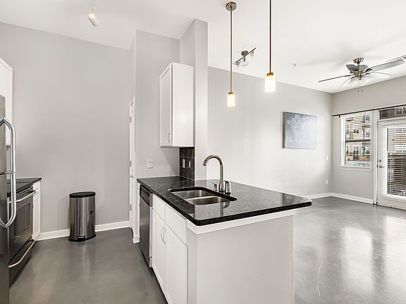 Move in Ready West End ground floor, poolside condo! This home features like new kitchen appliances, in unit Washer and Dryer, stained concrete floors and a spectacular saltwater pool view. Bristol West End amenities include: a refreshing pool with the sounds and view of the elaborate fire place and sparkling fountain. Grill out with friends or workout out in the fully equipped fitness center. Enjoy the owners lounge w/ free Wi-Fi or reserve the lounge featuring a full kitchen and pool table. Onsite management is there to assist with resident needs. No need to look for parking! This unit features an assigned parking space in the secured gated garage.