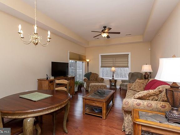 This is not just a pretty home, it's a lifestyle! No one above you in this awesome top-level condo (with 9 ft ceilings) in Creekside Village a luxury 55+ condo in a beautiful tranquil setting, with secure building, and elevator for easy access. This lovely unit is full of great amenities from the home itself to the many features the community has to offer (fitness center, tennis, pool, clubhouse, mini golf, walking trails and so much more)! The spacious floor plan welcomes you into a foyer with newer hardwood floors, leading you to an open concept floor plan. The kitchen is light and bright with corian counter tops, beautiful ceramic tile flooring, newer appliances and a large serving window that allows flow into the dining room, overlooking the living room. Lots of natural light from the large windows and the sliding glass door leading to a balcony. The master bedroom has a tray ceiling, an attached full bathroom with double sinks and a stand up, oversized shower. The master and second bedrooms are both spacious and have large walk in closets. Full bathroom is in hallway, right outside of 2nd bedroom. The laundry room with washer and dryer are included. There is even a gated storage locker in the lower level for all your extras. Everything you need for simple, relaxing living is right here. This home is beautifully cared for. Come see for yourself!
