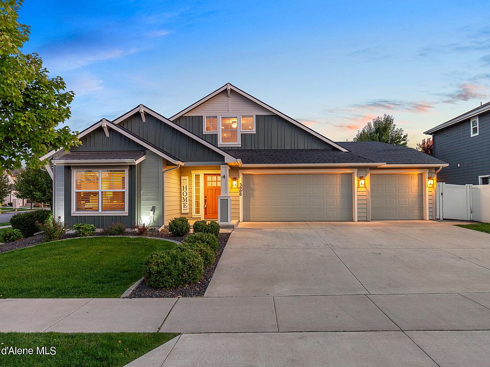 Immaculate home in the highly sought-after CDA Place neighborhood, conveniently located near downtown Lake Coeur d'Alene, shopping, schools, parks and trails. This gorgeous property offers 4 BR and 3 full baths, featuring open-concept layout perfect for modern living. The master suite includes walk-in and linen closets, and double sinks. The spacious upper-level loft/ 4th BR suite comes with its own full bath, providing flexibility for guests and addl' living space. The kitchen and living areas, are thoughtfully designed for seamless entertaining, featuring vaulted ceilings and cozy gas fireplace for those chilly winter nights. Step outside to your private backyard oasis, with large covered patio, fully fenced, beautifully landscaped, ideal for relaxation or entertaining. Situated on a large corner lot, in quiet neighborhood, step-free entry, 4-car garage and spacious storage shed. This stunning home offers both comfort and convenience. Don't miss out—this gem won't last long!