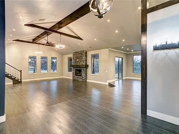 Spectacular contemporary design, nestled on 5.06 acres (MOL) Open concept with soaring ceilings create a breathtaking backdrop for art. Walls of windows allow the natural light to pour into this sleek, alluring home! Impressive kitchen loaded with amenities such as a large wrap around breakfast bar, center island with sink, pot filler and pull out shelves around cook top for seasonings. Private owner's suite with a luxurious bath that includes a jetted tub, walk-in shower and a closet fit for royalty. Upstairs game room with kitchenette. Two bedrooms and full bathroom also upstairs. Separate mud room and utility room. Downstairs powder bath for guests. Covered wrap around backyard patio offers gorgeous treed views, corner fireplace, grill and bar seating; making entertaining a breeze. With everything this home has to offer including its great location, youâll find this house is the perfect place to call homeâ¦