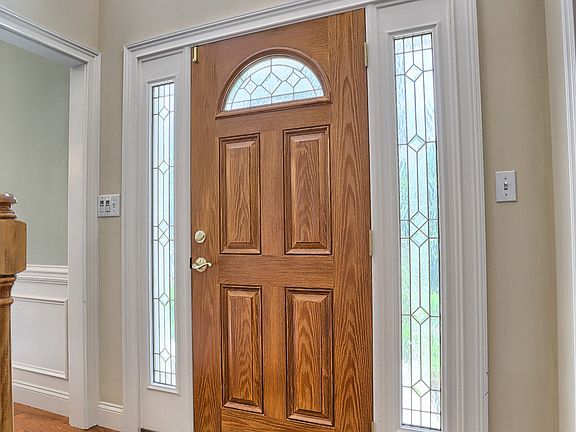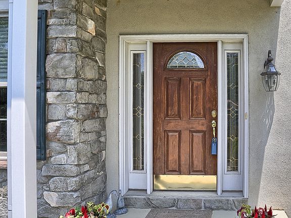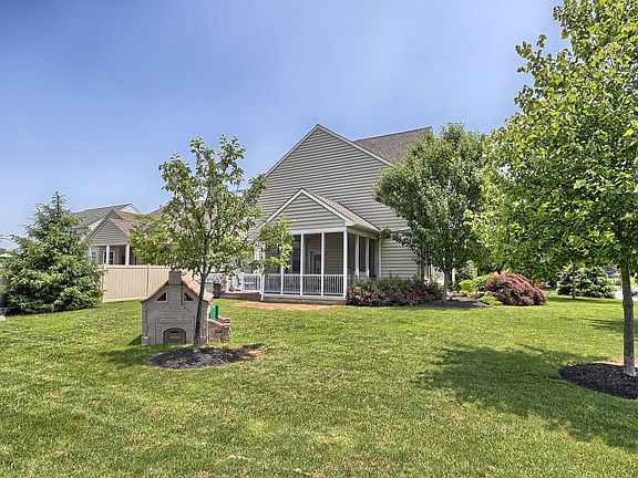 This inviting Manheim Township home showcases a spacious outdoor living area that includes both a deck and a screened-in porch, as well as sophisticated landscaping. The front door, accented with stately leaded window panels, opens to reveal a two-story foyer with a chandelier and hardwood floors. The foyer flows into a dining room, which has wainscoting and crown moulding, and a living room with crown moulding and French doors that open to the foyer and family room. Hardwood floors continue throughout both the dining room and living room. The family room contains a gas fireplace and an open floor plan in the back of the house, which allows for easy access to the eat-in kitchen. The kitchen includes a tile backsplash, gas range, and a built-in microwave and dishwasher. A first-floor powder room and laundry room are also located on the main level of the home. Upstairs, an exclusive master suite is comprised of a bedroom with cathedral ceiling, sitting area, walk-in closet, and an en-suite master bath with two vanities, a whirlpool tub, and a standing shower. Three additional bedrooms and a full bath complete the upper level of this exquisite home.