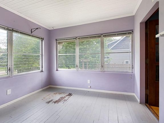 Abundant charm thanks to natural woodwork in excellent condition, a built-in buffet, & hardwood floors this is surely a home to see. The living room boasts a brick, wood-burning fireplace & walls of windows overlooking the front & side yard. Host friends & family for dinners in the dining room as you cook up your favorite desserts in the kitchen. Here you will find lots of cabinetry to house your cookware & plenty of counter space to utilize! 2 bedrooms sit on the front & back of the home, each filled with natural light. Nestled between them is the home's full bathroom. Sit on the breezy front porch & take in views through the classic Jalouise windows. The lower level is waiting for your imagination to shape it! Egress window for easy third bedroom addition. The backyard will be your summer oasis thanks to its patio. Transform the partially finished garage into an extension of the home's living space.