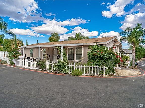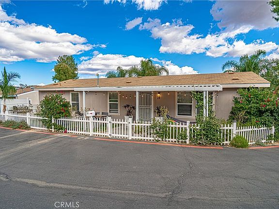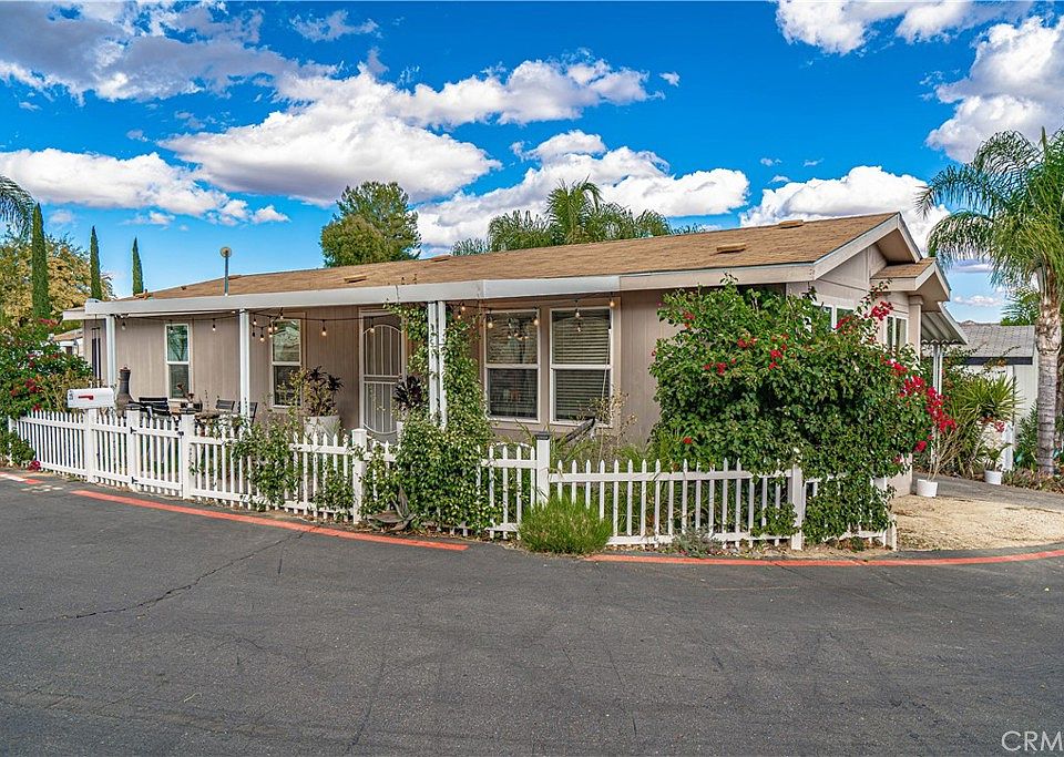 Welcome to this charming 3-bedroom, 2-bathroom home nestled in a tranquil Hasley Estates. Built in 2017, this double-wide residence boasts a peaceful living space. The interior features light and bright finishes with exquisite wood-like laminate flooring which adds to the overall ambiance. The kitchen is equipped with modern farmhouse-style cabinets and a large center island with a breakfast bar. The white sleek appliances, ensure a contemporary cooking experience. With an open floor plan, the living and dining areas seamlessly flow together, optimizing the use of space. The primary bedroom is a good size with a full bathroom. Two additional bedrooms and a hallway bath complete the home. Step outside and enjoy your morning coffee on the lovely front porch. The covered patio provides ample seating for outdoor relaxation. The yard also has an adorable white picket fence, beautiful shrubbery, and blooming bougainvilleas. Conveniently located near the community pool, you can take a refreshing dip whenever you desire. The community amenities also include a park, sports court, and walking area. Furthermore, the property offers plenty of parking options, including a shaded carport, ensuring convenience for both you and your guests. Call today for a private showing.
