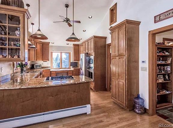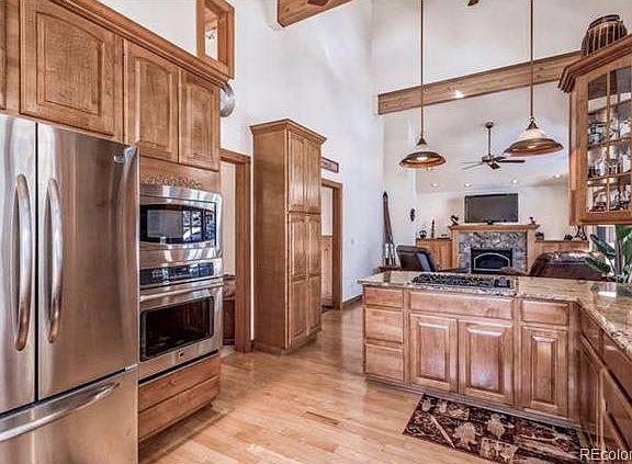 This Conifer Mountain home has a metal roof, cedar siding and amazing decks. There is an open floor plan where one of three family rooms adjoins the gourmet kitchen making this a popular area for lounging and/or entertaining. With 3 living rooms, each with their own fireplace, everyone should be able to easily find a place for themselves. The bedrooms are all large, most with walk-in closets and beautiful views from their large picture windows. Enjoy the Colorado outdoors on the inviting peaceful multi-level deck surrounded by rock outcroppings and 2 waterfalls. Don’t forget to look at the office with built-in shelving off the garage!