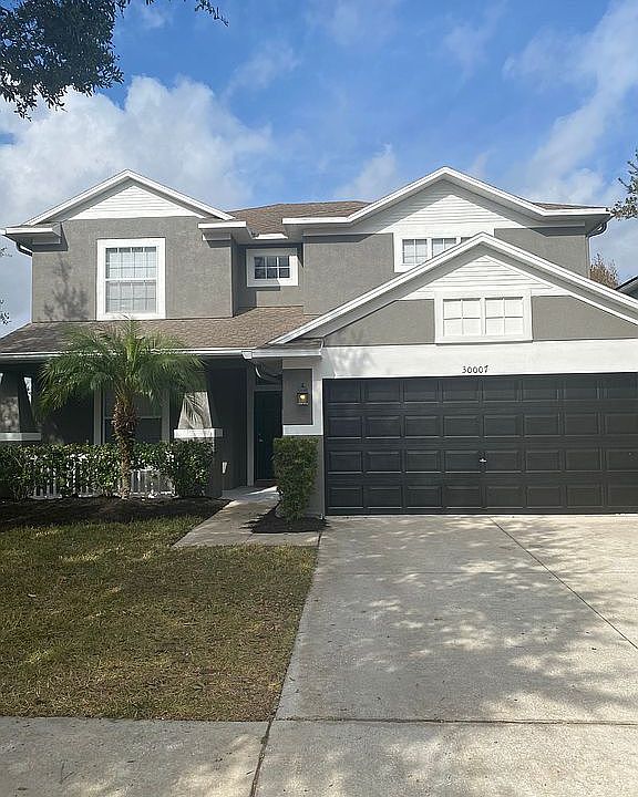 Fall in love with this charming residence located on a tranquil and peaceful cul-de-sac, with gorgeous conservation views in the Country Walk Village in Wesley Chapel. Greet your guests in the foyer and welcome them to separate dining and living rooms. The gourmet kitchen is a chef's delight! It displays cherry cabinetry, modern stainless-steel appliances, smooth top range, pantry, and a convenient breakfast nook. Through oversized sliding doors access the backyard patio and enjoy gorgeous views of the woods, this outdoor space is expansive and can accommodate a pool. This home offers 4 bedrooms, 2½ baths and 2 car garage. Brand new 5 Ton HVAC system. Among some of the many upgrades you will find modern lighting fixtures, New blinds throughout the entire house, exquisite Luxury Vinyl Plank flooring, upgraded carpet upstairs, arched walkways, generous sunlight and lots of space for family entertainment. The guest bathroom upstairs features large Porcelain tile with accented backsplash. The master bedroom is generous in size, features tray ceilings and offers a large walk-in closet, master bath with dual vanities, dual walk in closets & oversized walk in shower with frameless glass. The secondary bedrooms are beautifully appointed. Upstairs bonus area is perfect for movies & games. Plenty of storage space throughout with a separate laundry room. The wonderful club house offers lap pool, family pool, tennis courts, basketball, playground, and much more! Inviting curb appeal with manicured landscaping and welcoming entryway & porch. Very well maintained! Minutes to I-75 and regional outlet malls. Publix, Target, Costco, Sams, Florida Hospital, and restaurants. Great place to call home and enjoy the Florida lifestyle!