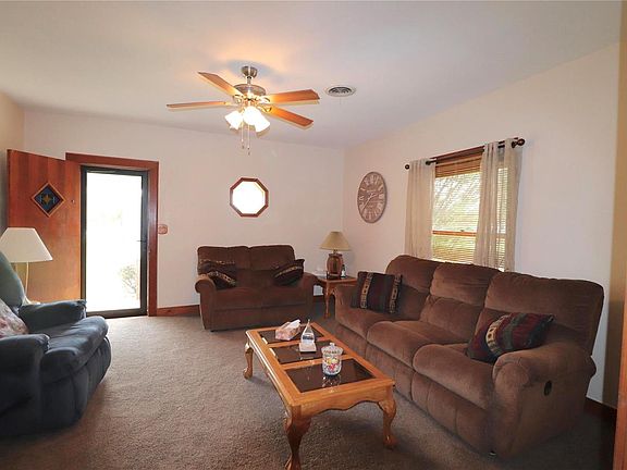 Country style 3 bedroom, 2 bathroom home sits on 11.43 acres of pasture. 1600 sq ft of living space includes many updates! Feel right at home when you enter the living room, go on through the formal dining room with a pellet stove. The kitchen has been updated with new stainless steel appliances (refrigerator, double oven, & dishwasher). Then you have a sunroom or nice office area that overlooks the large deck! Other recent updates to include: new carpet, new ceiling fans, remodeled guest bathroom, new hardwood flooring, new sump pump in the cellar/basement, newer heat pump, newer water heater, & more! This property features 3 beautiful ponds, a large 40x50 horse barn, heat/air 24x50 garage/shop. Great property for animals since it is fenced and cross fenced. Owners can get 25-30 round bales of hay or 100-125 square bales of hay from the pasture! The master bedroom includes double closets with built in's & a full bath. This is a prime location to be in the country, but close to town!