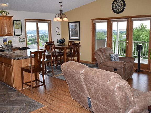 Incredible views of Great Falls, the river, & mountains. This 3 bedroom 3 bath move in ready home's main floor great room includes dining area, living room with gas fireplace and kitchen with granite countertops, new tile floor, SS appliances, 5 burner gas stove/range, and large island with storage. French doors in living area open to a covered patio for your enjoyment. The main floor also includes a master bedroom with walk in closet and bathroom with large walk in tiled shower. Door from MB opens to back patio. 2nd bedroom, bathroom with tiled tub surround and laundry complete the main floor. French doors open to spacious basement family room with a freestanding gas stove. Basement also includes a 3/4 bath, bedroom, and utility room. Attached oversized heated 2 stall garage w/opene Fenced back yard with 2 gates.1 oversized 1 block below Skyline Gas forced air with air conditioning unit maintenance free siding, sprinkler system This home is on a school bus route