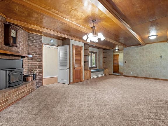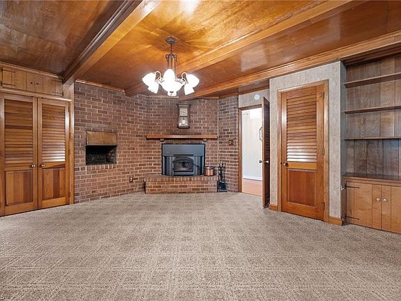 Fabulous brick ranch home nestled on a 1.14 acre corner double lot in a great established neighborhood of Burlington with NO HOA! Featuring dual-entry foyers w/hardwood floors as well as expansive living room showcasing beamed ceilings, built-ins, wood stove, and unique indoor brick grill. Stylish kitchen boasts granite counters, tile flooring, stainless appliances, stone backsplash, and glass-front cabinets. Formal dining room opens into a bright den lined with windows. Huge mud room includes laundry, storage closet, & convenient half bath. Primary offers a walk-in closet & en-suite bath with luxurious tiled walk-in shower. Two additional bedrooms share a tasteful hall bath. Notable features include plantation shutters, cedar lined closets, gutter guards & all appliances remain. Enjoy the outdoor amenities, which include covered front porch, attached 2-car garage, & fenced backyard featuring patio with retractable awning & ample 21' storage room. Prime location close to everything!