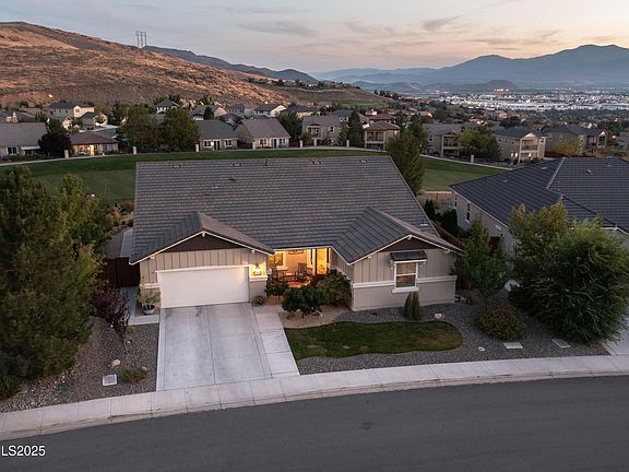 This home is a gem sitting above the 9th hole of D'Andrea golf course with wonderful city and mountain views. Enjoy quiet sunrises with coffee on the back patio or watch those sunsets while entertaining friends in a beautiful and tastefully finished backyard. Raised planting beds, a water feature, large covered patio, string lights and a hot tub are some of the amenities. The open and bright floor plan is very versatile. The primary bedroom suite is separate from the other bedrooms, there is a bonus room that could be used for a formal living room, den or exercise room, and the home has lots of closets and storage. Quartzite countertop, upgraded mirrors and lighting added to the primary bathroom. Plantation shutters throughout and a tandem 3-car garage with lots of room. This home shows pride of ownership.