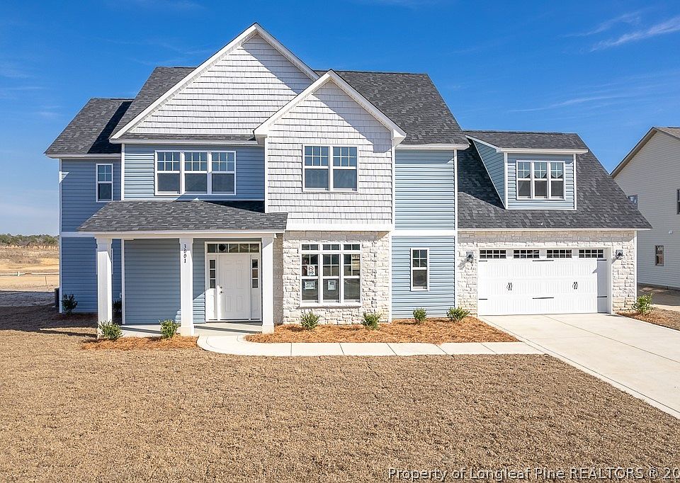 Georgetown Estates-Stone & Vinyl 2 Story, two car garage, open foyer, with 5 Bedrooms, 3 Baths, Formal Dining Room, Kitchen with Dining Area, Pantry & Bar Seating, Open oversized Great Room, Guest Bedroom and full bath downstairs for in-laws, Master Bedroom Upstairs, with Large Walk in Closet, Dual Vanity, 6 ft tub, Separate Shower, 3 other Guest Bedrooms Up. Amazing open floor plan with separate laundry room, Completion approx. 90 days as of 10/1/22 Jack Britt Schools. "Built Strong by Armstrong" won't last long