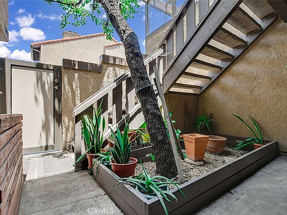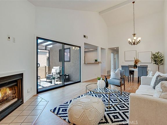 This charming upper-level, single-story end unit in Via Valencia is in the heart of Brea. This 2 bedroom 2 bath condo boasts single level living with an abundance of natural light and privacy – a rare combination, especially in condo living! The privacy begins even before you reach the front door, as this home and the neighboring unit are the only two to share a private gate entrance. Before you ascend the stairs to the front door, note the garden area and additional storage downstairs. And then once inside, you will be welcomed by the abundant natural light, high ceilings, open flow layout, a cozy fireplace, and generous private balcony that expands your living space and faces beautiful trees. The primary bedroom features a walk in closet and step-in shower. Convenient inside laundry, a detached 2-car garage just below you, and an HOA that covers water, trash removal, exterior maintenance, and of course the pool. All this within the highly desirable Fullerton School District, close to Downtown Brea’s shopping and dining, UC Fullerton’s growing campus, and more. This lovely condo is ready to welcome its new owner and welcome you HOME.