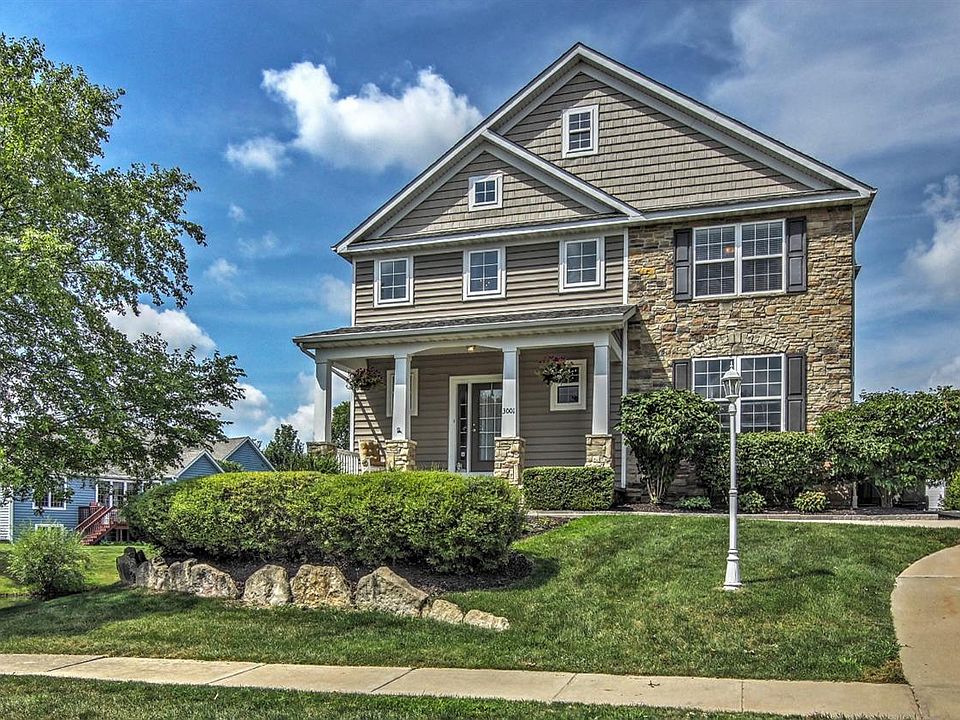 PRIDE OF OWNERSHIP shows in this SPECTACULAR CRAFTSMAN STYLE 2-STORY. Situated on a PREMIUM LOT overlooking the POND, this home is one you'll want to make yours! The main level with 9' ceilings is warm and welcoming with HARDWOOD FLOORS. SPACIOUS LAYOUT offers versatility. The GREAT ROOM has vaulted ceilings, a gas FIREPLACE, wall of windows and is open to the WELL-APPOINTED KITCHEN featuring beautiful cabinetry, GRANITE counters, island, and pantry. French door leads to the DECK where you'll enjoy FABULOUS VIEWS. There are 4 GENEROUS SIZE BR's on the upper level, including a master with it's own PRIVATE BATH. Full FINISHED DAYLIGHT BASEMENT with 9' CEILINGS includes a 5th BR, full bath, large recreation area and an incredible THEATER ROOM! There's a 3+ CAR side load GARAGE, covered front porch, brick PATIO, water filtration system for the whole house and MUCH, MUCH MORE! Great location and close to schools, trails & shopping. Seller is providing a one year HOME WARRANTY.