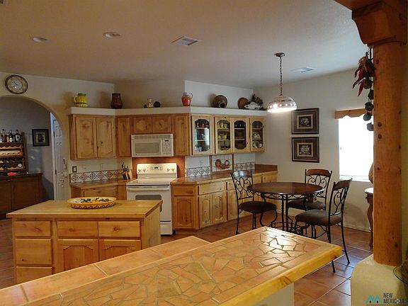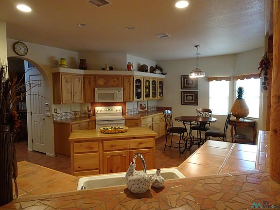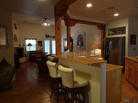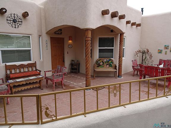 An southwest Desert Oasis in Deming, NM with fabulous views of the Floridas. this 1998 sq ft. 2 bedroom, 2 bath Pueblo Styled home features, tiled floor, exposed wood beams, Kiva FP in living room w/high Pot Shelves, eat in kitchen, formal dining room, office book shelved room off kitchen with Laundry Closet. 3 car garage/one bay being used at fitness room and several closet areas for storage. roof top deck to see the wonders of the night, enclosed front entrance patio, covered back patio and open landscaped patio and outdoor kitchen. Hot tub and reflecting gardens with mature trees and shade. Love this house! It's conveniently located to Downton Deming and access to I-10 to Las Cruces, Lordsburg and Airport at El Paso Texas. Silver City is to the north and Columbus NM to the south. Call Micki for appointment 575.494.2610.