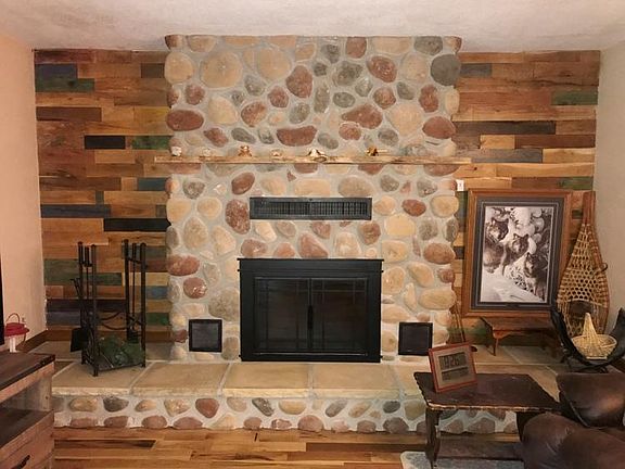 - Fireplace features: Wood Burning, Stone, Insert w/Blower, Rock