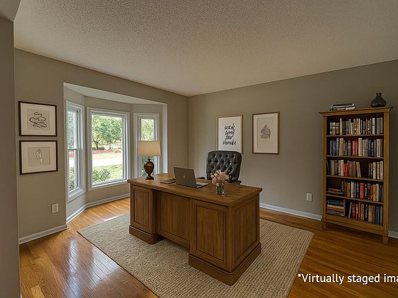 Gorgeous hardwood floorsElegant brick accentsCorner lotDramatic two-story family roomSpacious bright white kitchenCharming bay window